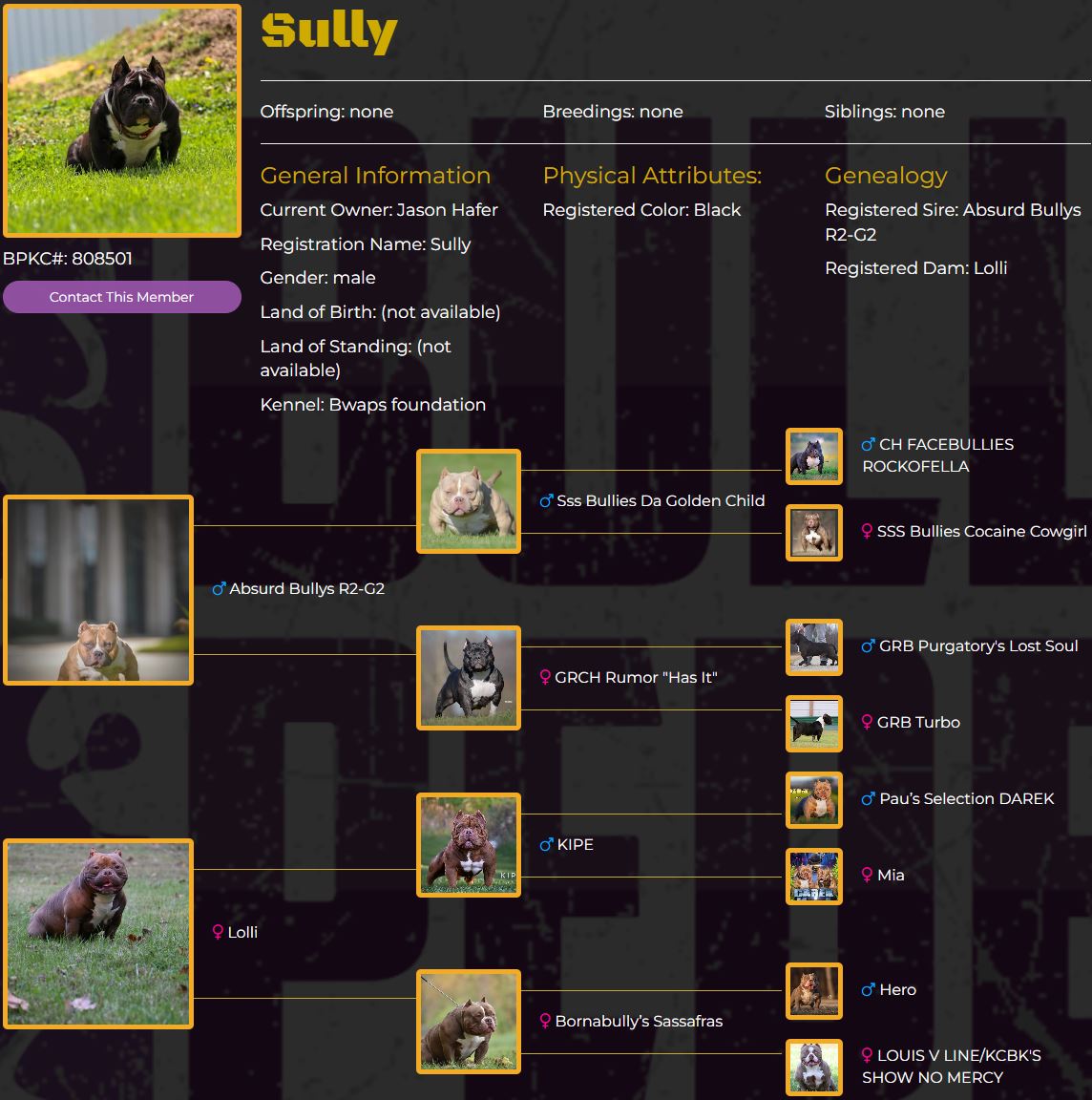 - Brother of Sully - Same Pedigree